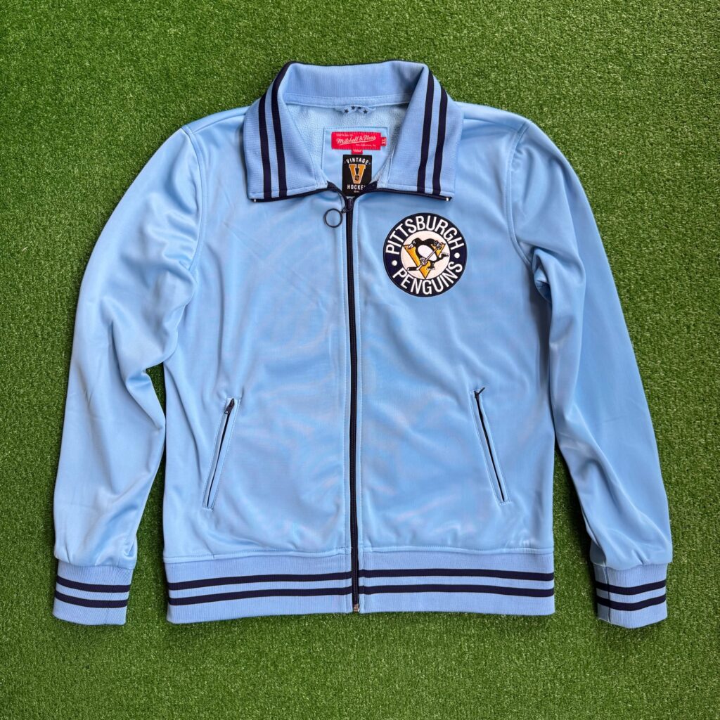 Mitchell and Ness00’s Pittsburgh Penguins Mitchell and Ness Retro NHL Zip Up Warmup Size Medium$60Sizes: Medium