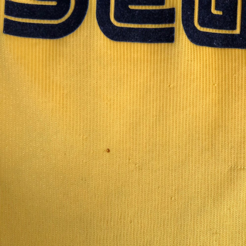 - Preowned In fair vintage condition showing some signs of wear (a few small holes on front, some snags and minor staining/discoloration)