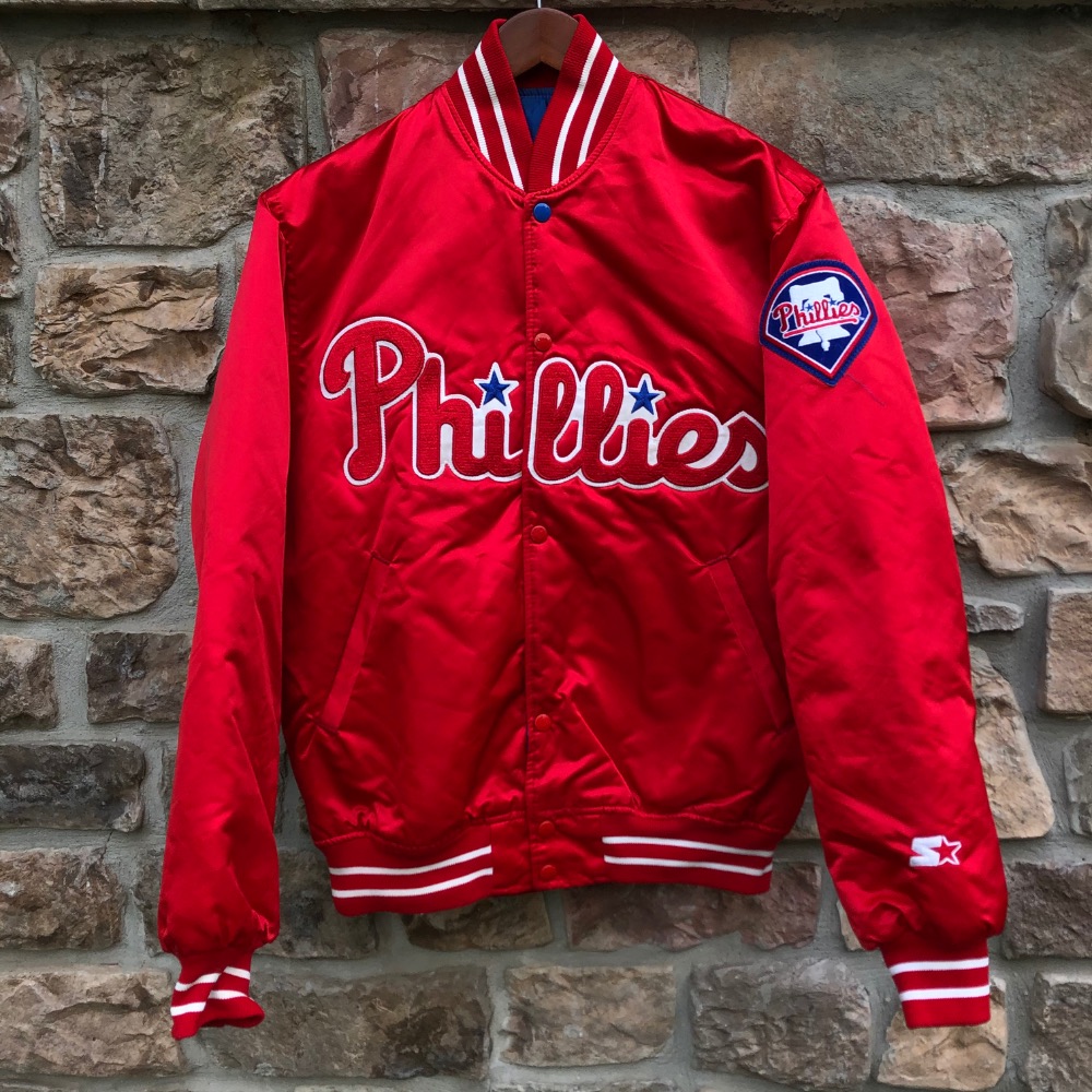 Out of stockStarter90’s Philadelphia Phillies MLB Red Starter Satin Bomber Jacket Size Large$158Sizes: Large