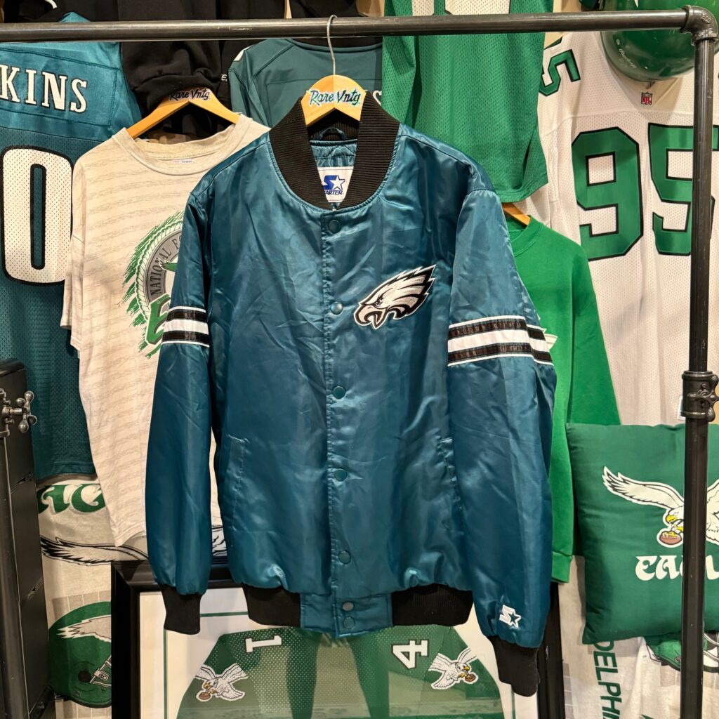 Out of stockStarter00’s Philadelphia Eagles Starter Satin Bomber NFL Jacket Size Medium$120Sizes: Medium